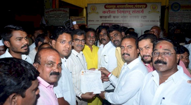 पंढरपूर नगर परिषदेवर व्यापारी व सर्व पक्षीय पदाधिकाऱ्यांनी काढला मोर्चा