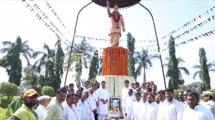 पंढरपूर - पंढरपूर तालुक्यातील वेणुनगर-गुरसाळे येथील श्री विठ्ठल सहकारी साखर कारखाना येथे संस्थापक चेअरमन व माजी आमदार कर्मवीर कै. औदुंबररावजी (आण्णा) पाटील यांची १०० वी जयंती मोठ्या उत्साहात साजरी करण्यात आली.