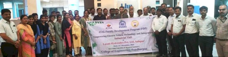 पंढरपूर - गोपाळपूर (ता.पंढरपूर) येथील श्री.विठ्ठल एज्युकेशन अँड रिसर्च इन्स्टिट्यूट संचलित कॉलेज ऑफ इंजिनिअरिंगच्या इलेक्ट्रिकल इंजिनिअरिंग विभागातील प्राध्यापकांनी सोलापूर मधील ‘लक्ष्मी हायड्रोलीक्स प्रायव्हेट लिमिटेड’ या कंपनीला नुकतीच भेट दिली. कंपनीमध्ये निर्माण केल्या जाणाऱ्या इलेक्ट्रिकल मोटर व पंप यांचा अभ्यास करणे हा या भेटीमागचा उद्देश होता.