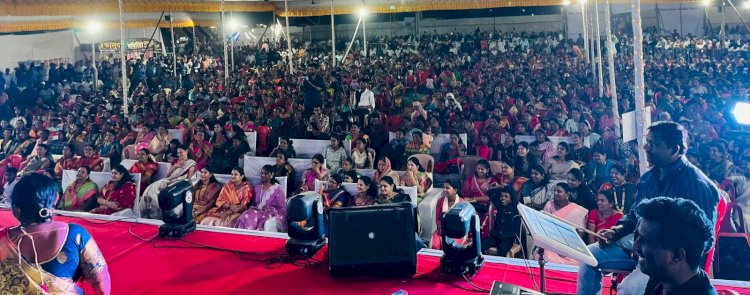 कार्यक्रम पाहण्यासाठी रेल्वे मैदान येथे महिलांची अलोट गर्दी