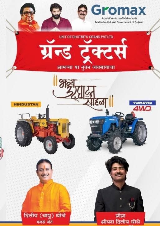 यावेळी त्यांनी सदर ट्रॅक्टर्स शोरूमच्या उद्घाटन समारंभास पंढरपूर शहर व तालुक्यातील नागरिकांनी उपस्थित राहण्याचे आवाहन मनसे नेते दिलीप बापू धोत्रे, प्रोप्रायटर श्रीयश दिलीप धोत्रे यांनी केले आहे.