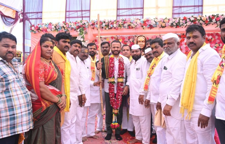 पुण्यश्लोक अहिल्यादेवी होळकर यांच्या त्रिशताब्दी जयंती सोहळ्याच्या निमित्ताने भारतीय जनता पार्टीच्या वतीने देशभर राज्यभर मंडलनिहाय जयंती साजरी करून अहिल्यादेवींच्या विचाराचे उदात्तीकरण केले त्याबद्दल मंडळाच्या वतीने पालकमंत्री जयकुमार गोरे यांचा धनगर समाजाचे प्रतीक असलेली घोंगडी व काठी देऊन सन्मान केला.