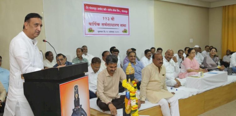 बँकेची 113 वी वार्षिक सर्वसाधारण सभा बँकेच्या कर्मयोगी सभागृह, शाखा नवीपेठ, पंढरपूर येथे गुरूवार दि.14 ऑगस्ट 2025 रोजी सायंकाळी 5.00 वाजता खेळीमेळीच्या वातावरणात संपन्न झाली, याप्रसंगी ते बोलत होते. यावेळी बँकेचे कुटुंबप्रमुख मा.आ.प्रशांत परिचारक तसेच विविध संस्थांचे पदाधिकारी व मान्यवर मोठ्या संखने उपस्थित होते. याप्रसंगी उपस्थितीत सभासदांचे प्रशिक्षण पार पडले.