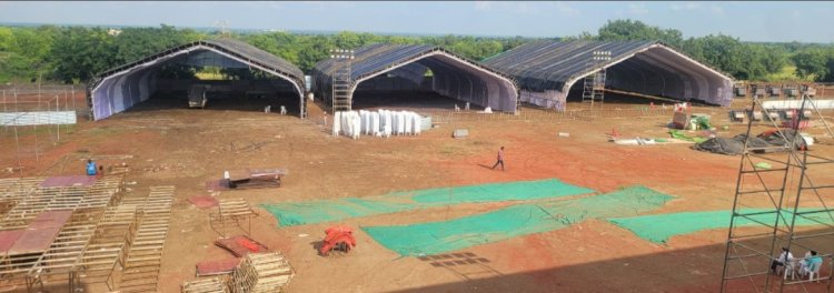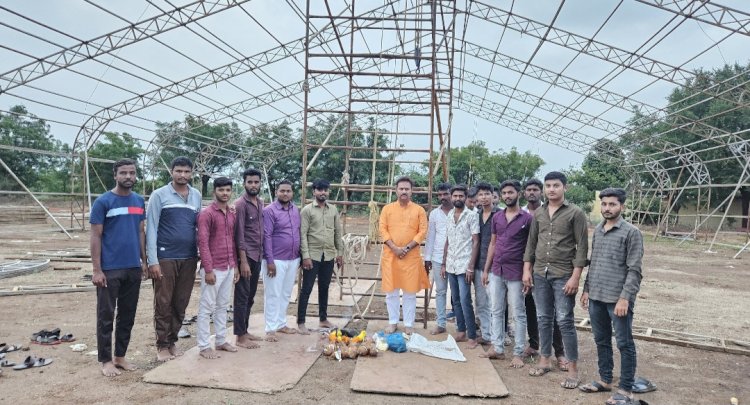 पंढरपूर - श्री विठ्ठल सहकारी साखर कारखान्याचे चेअरमन अभिजीत आबा पाटील यांच्या संकल्पनेतून व विठ्ठल प्रतिष्ठान यांच्या वतीने आयोजित करण्यात आलेल्या माढा कृषी व संस्कृती महोत्सव २०२४ या दसऱ्याच्या शुभ मुहूर्तावर सुरू होणाऱ्या या महोत्सवासाठी उभारण्यात येणाऱ्या भव्य शामियाना आणि मंडप पूजन अभिजीत पाटील यांच्या हस्ते पार पडले.