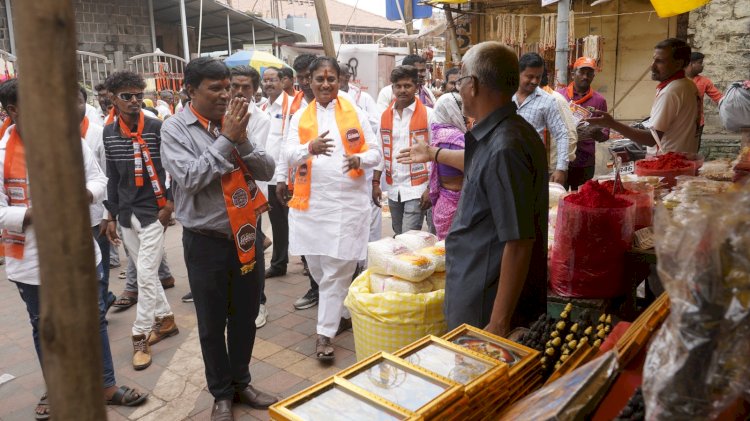 पंढरपूर - पंढरपूर मंगळवेढा विधानसभा मतदारसंघाचे मनसेचे अधिकृत उमेदवार दिलीप धोत्रे यांच्या प्रचारार्थ पंढरपूर शहरातील विविध भागात प्रचार फेरीचे आयोजन करण्यात येत आहे.या प्रचार फेरीची सुरुवात नामदेव पायरी येथून श्री विठ्ठलाचे दर्शन घेऊन करण्यात आली.यावेळी मंदिर परिसरातील नागरिकांकडून ठिकठिकाणी मनसे उमेदवार दिलीप धोत्रे यांचे स्वागत करण्यात आले.