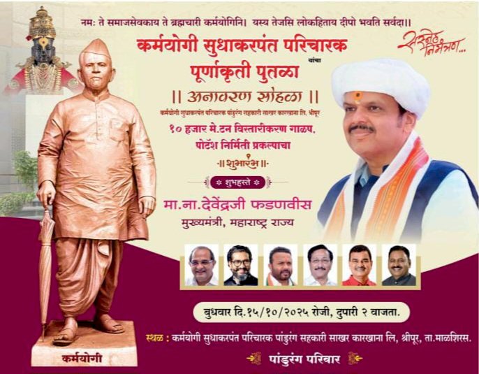 कर्मयोगी सुधाकरपंत परिचारक पांडुरंग सहकारी साखर कारखाना, श्रीपूर (ता. माळशिरस) येथे सुधाकरपंत परिचारक यांच्या पूर्णाकृती पुतळ्याचे अनावरण, कारखान्याच्या १० हजार टन विस्तारीकरण गाळप, पोटॅश निर्मिती प्रकल्पाच्या शुभारंभ कार्यक्रमात ते बोलत होते. यावेळी राज्याचे ग्रामविकास मंत्री तथा जिल्ह्याचे पालकमंत्री जयकुमार गोरे, माजी उपमुख्यमंत्री विजयसिंह मोहिते पाटील, खासदार धैर्यशील मोहिते पाटील, कारखान्याचे चेअरमन माजी आमदार प्रशांत परिचारक आदी उपस्थित होते.
