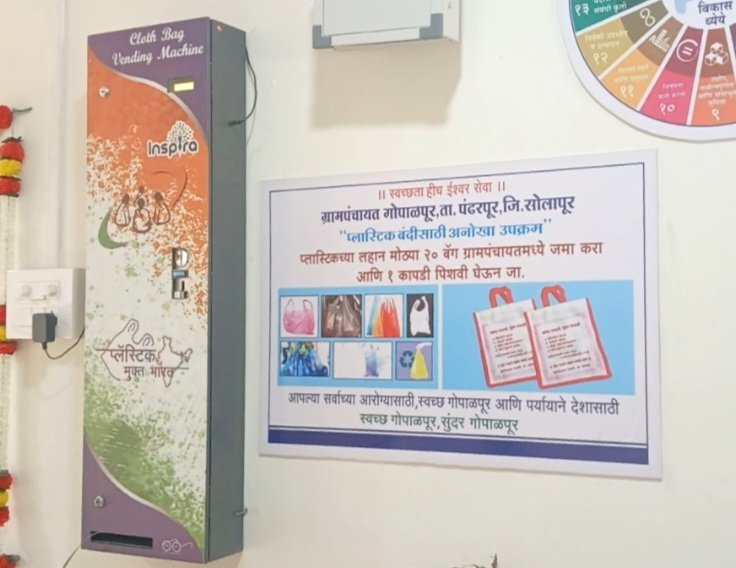 मशीन मध्ये क्वाईन टाका, कापडी बॅग घ्या..! ; गोपाळपूर ग्रामपंचायतीचा प्लॅस्टिकवर अनोखा उपाय..!